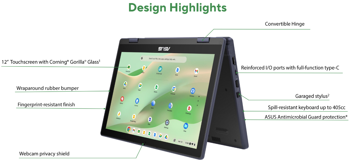 Asus Chromebook CR1104, Chrome Education Upgrade License, 4/32, dual camera, N100, flip touch and Stylus, display 11.6 inches with 5WS0Q81865, 3Y Pick and Return Warranty and 3Y Accidental Damage Protection
